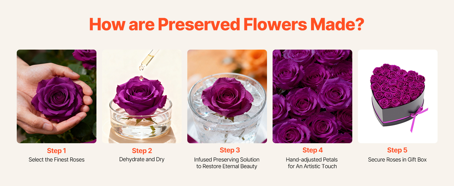 Vyrobené z pravých ruží pomocou profesionálnych konzervačných techník, každý navždy kvet je podopretý stabilným rámom, zostáva živý a elegantný pre dlhodobý pôžitok.