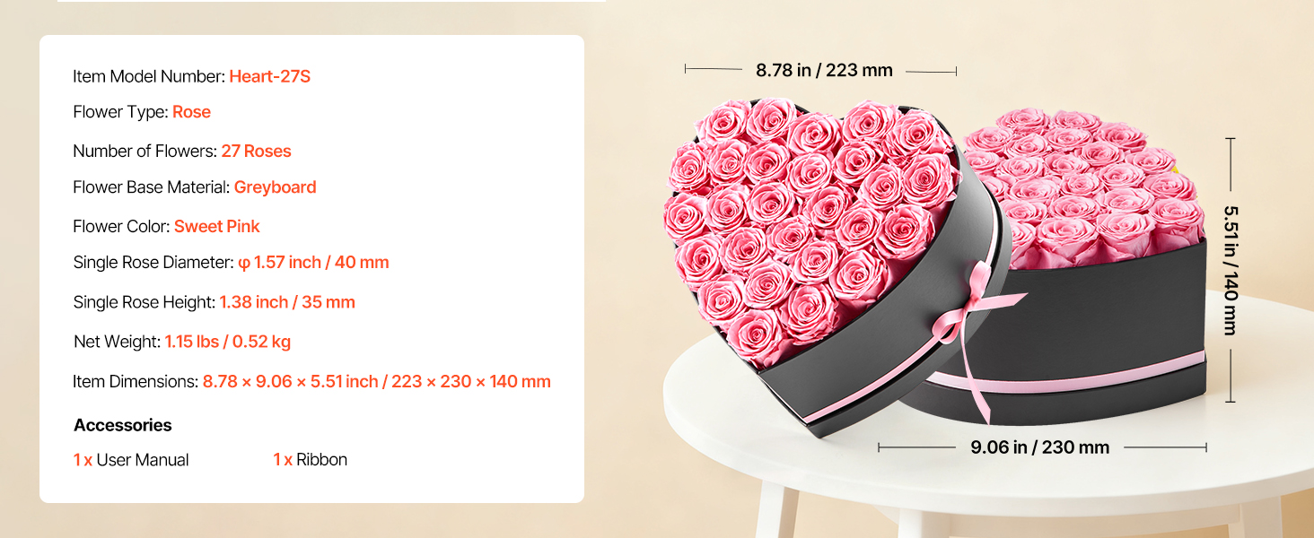 Táto konzervovaná darčeková škatuľa s kvetmi je ideálna na výzdobu domácnosti, svadby, výročia alebo Deň matiek, symbolizuje nadčasovú náklonnosť a vytvára nezabudnuteľné okamihy.