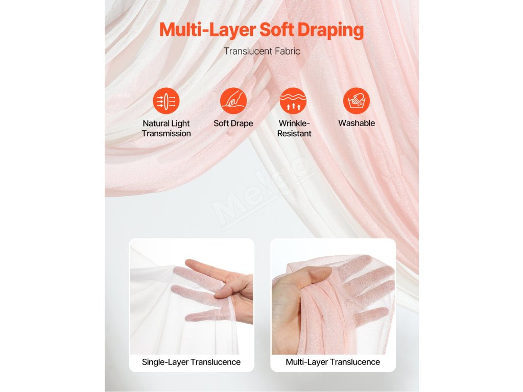 Záves tejto súpravy umelých kvetov na svadobný oblúk s dĺžkou 21 stôp možno zavesiť alebo prevesiť a vytvoriť tak na mieste konania podujatia vrstvy romantiky. Slúži aj ako všestranný dekoratívny prvok, ktorý dodá eleganciu akémukoľvek prostrediu