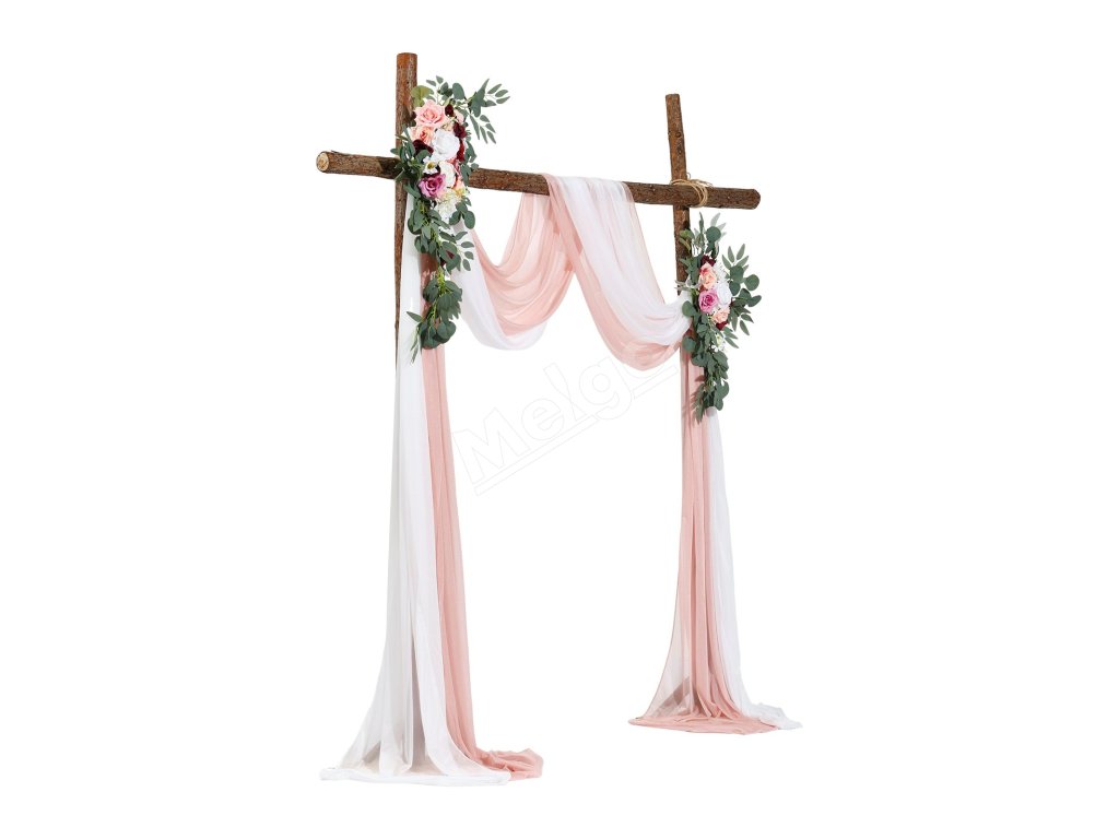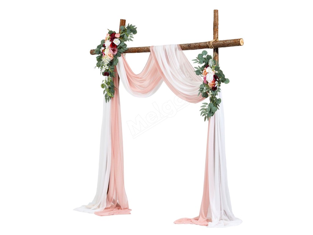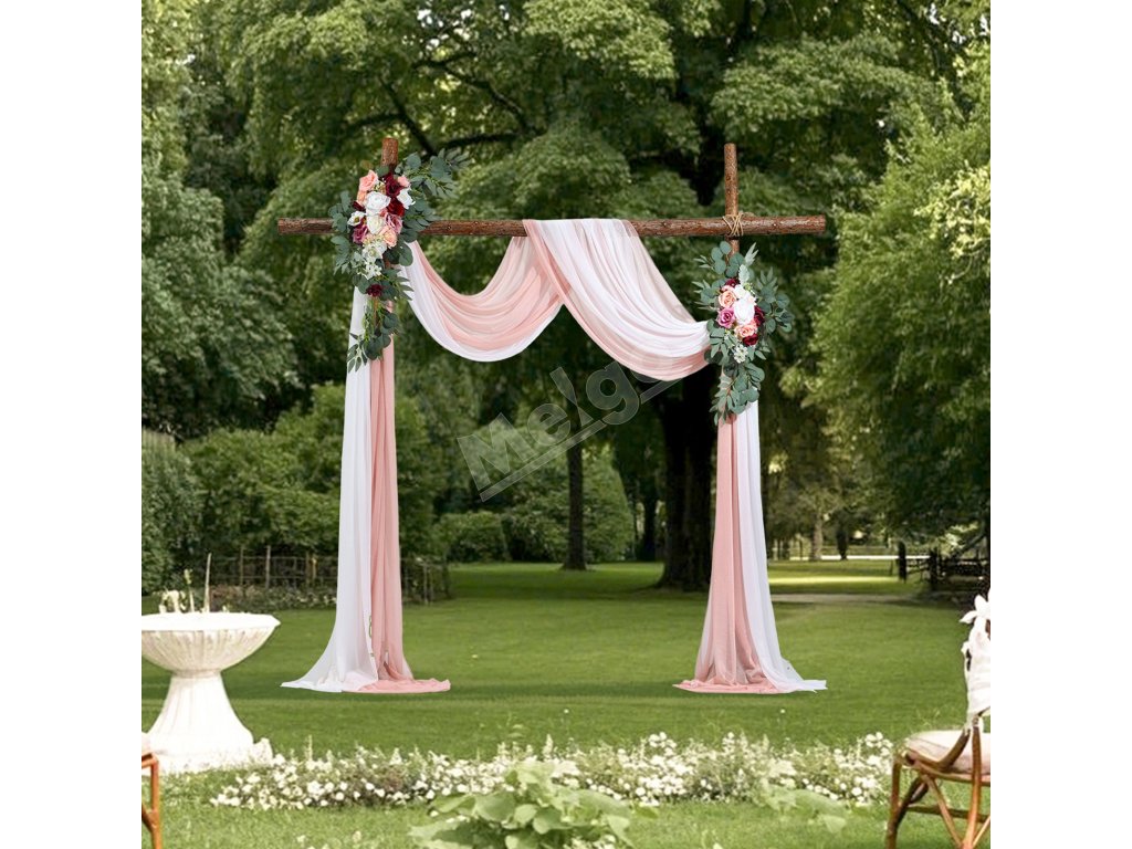Umelá kvetinová výzdoba na oblúk, ružová, 2 aranžmány, 2 závoje