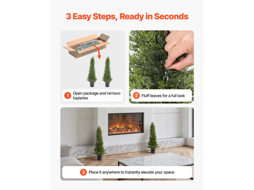 Sada 2 umelých borovicových stromčekov, výška 914 mm, hodvábne listy