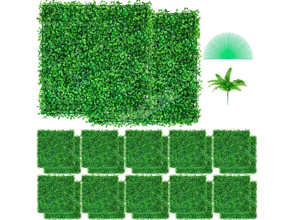 Umelý panel z buxusu 24 ks 10"×10" 4 cm zelený na dekor a plot