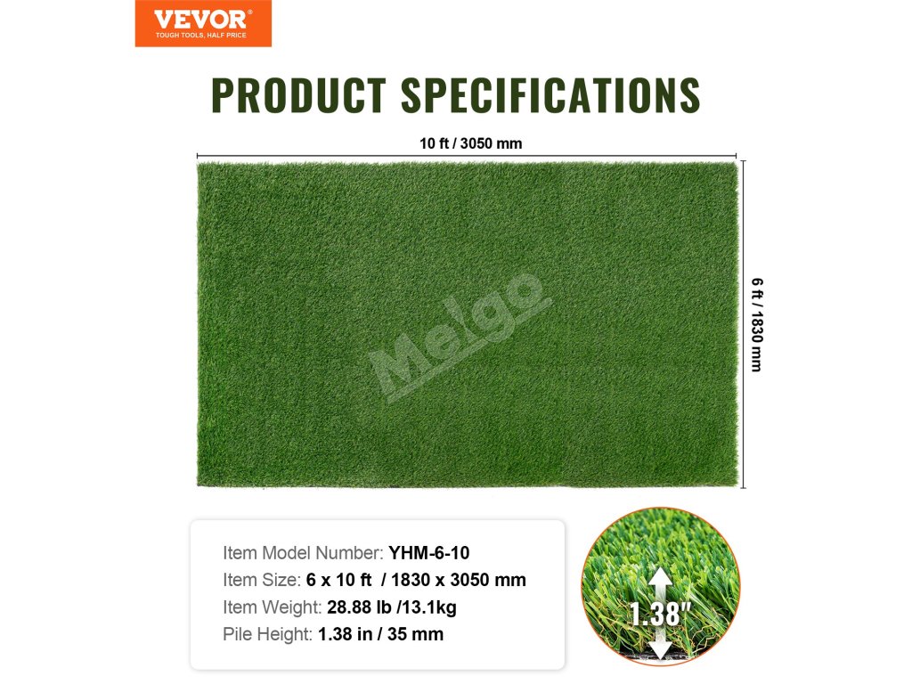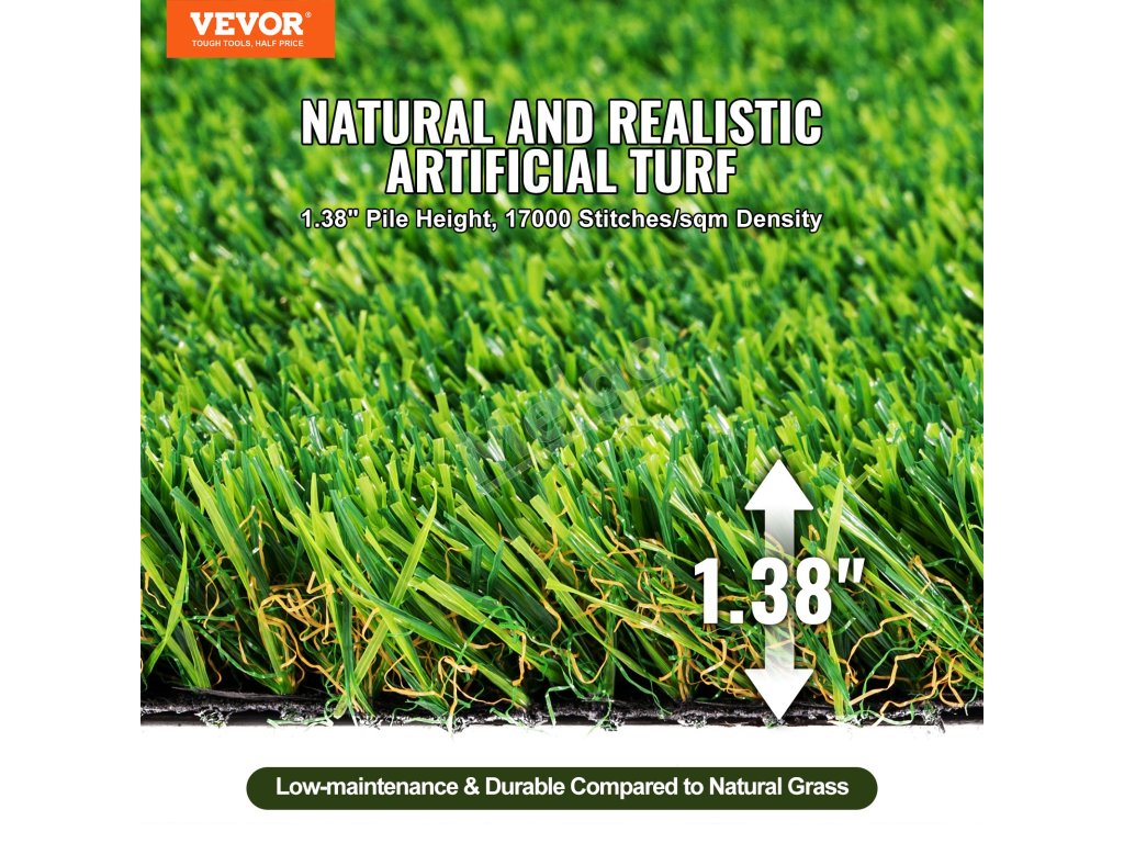 Náš umelý trávnik má štvorfarebné steblá trávy s vysokou hustotou, ktoré simulujú farbu a tvar stebiel skutočnej trávy. S výškou trávy 1,38" a hustotou 17 000 stehov na meter štvorcový je tráva v.. Nie je potrebná žiadna údržba, čo šetrí váš čas a námahu.