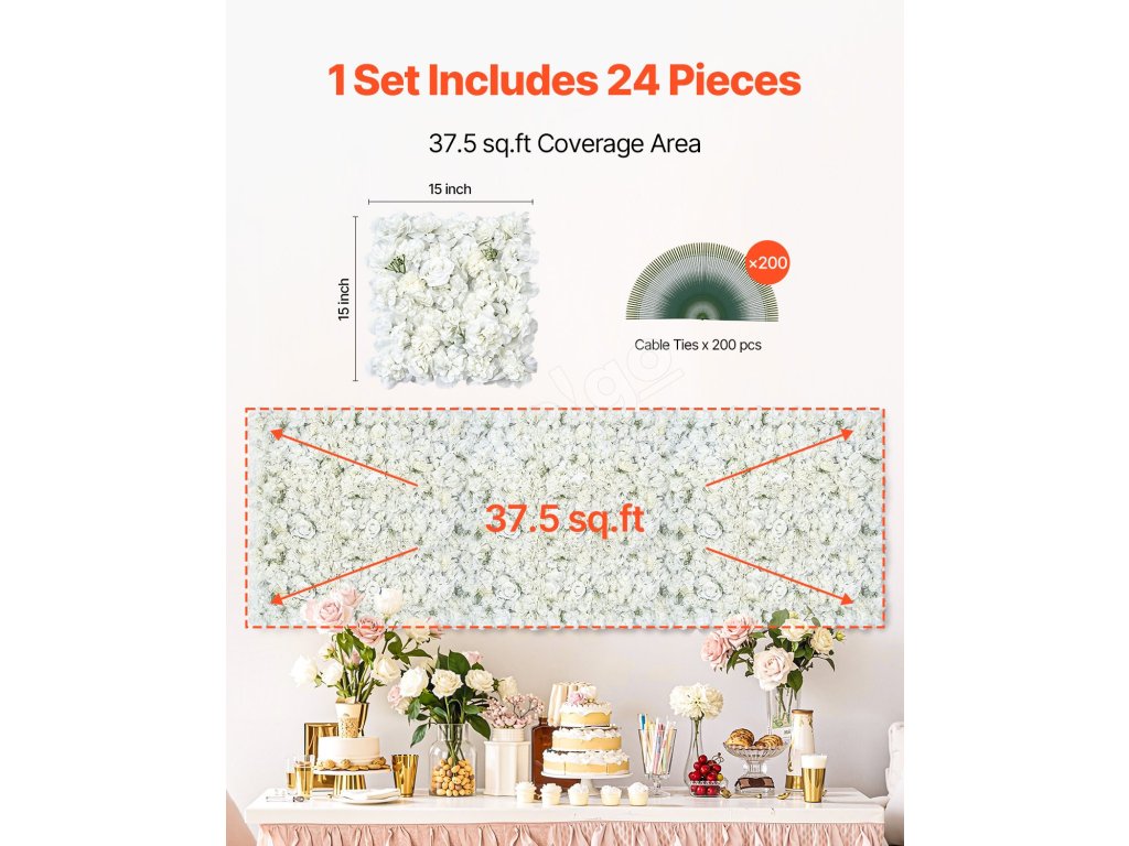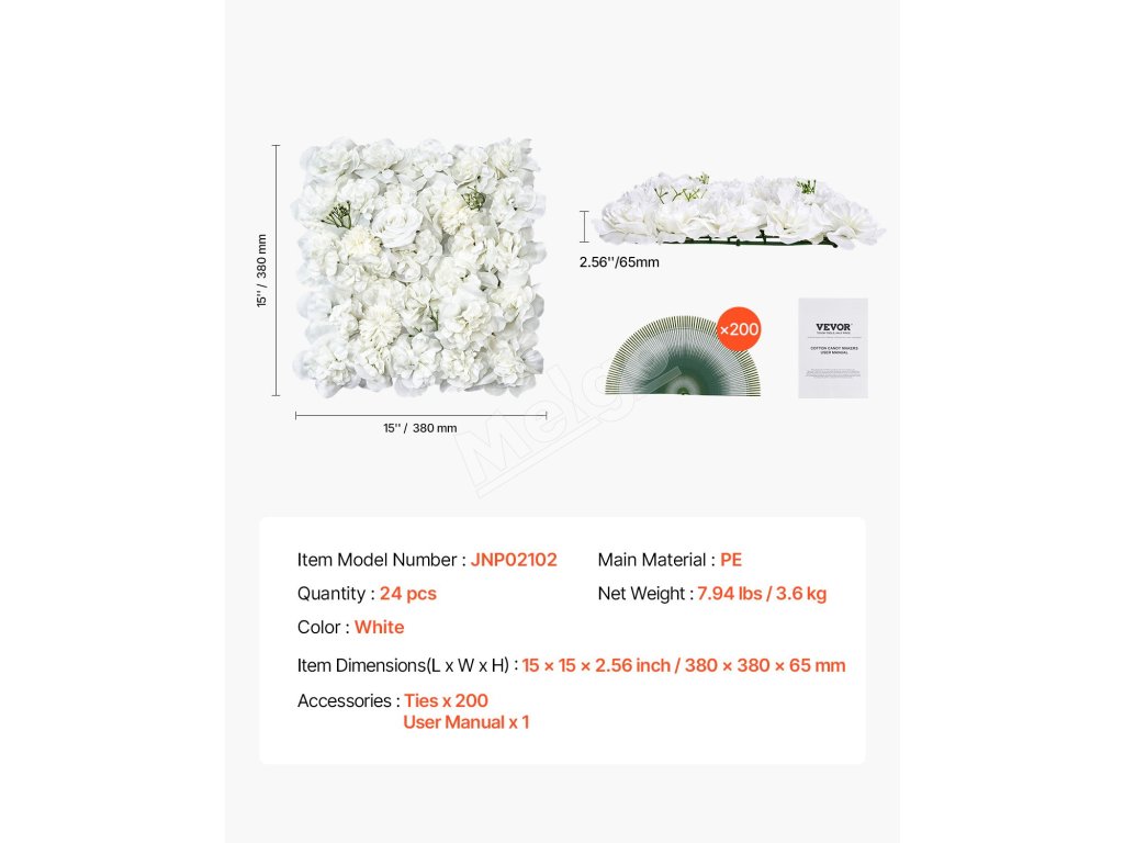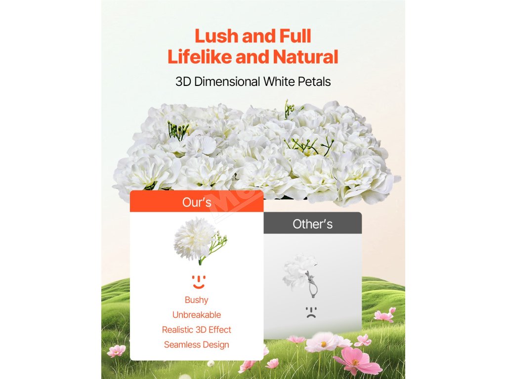 3D panel na kvetinovú stenu, 24 ks, 15×15 inch, umelý, biely