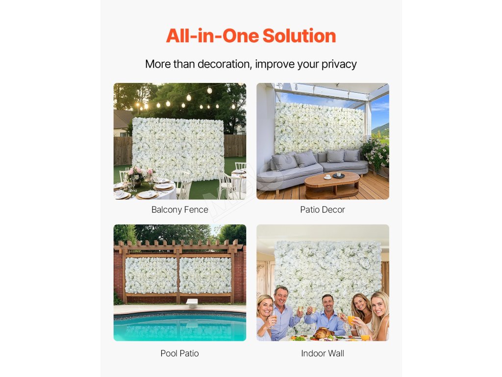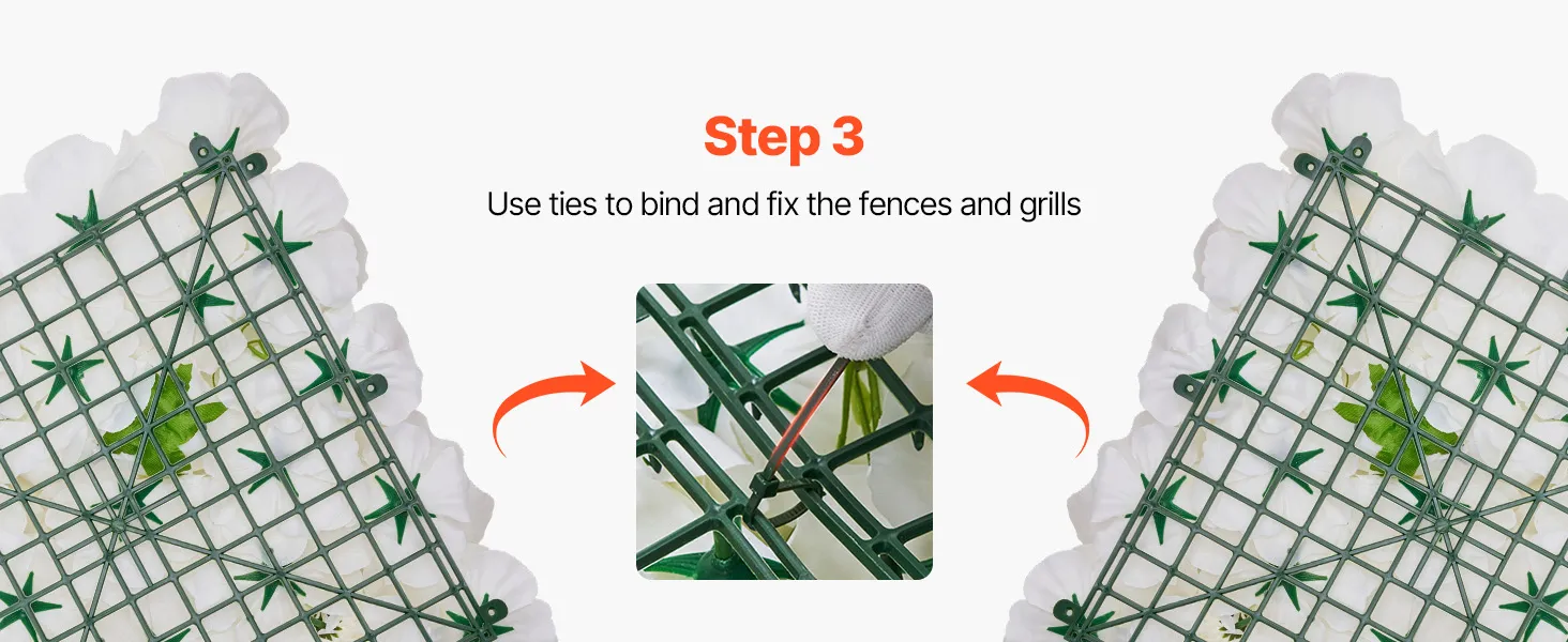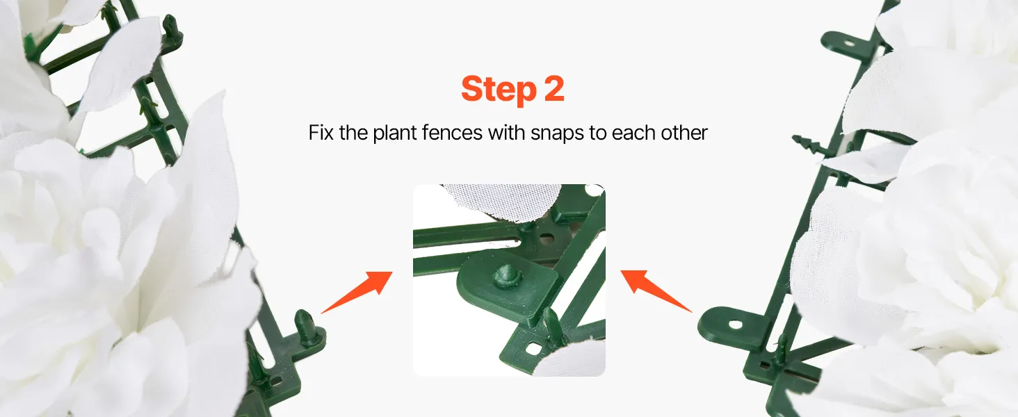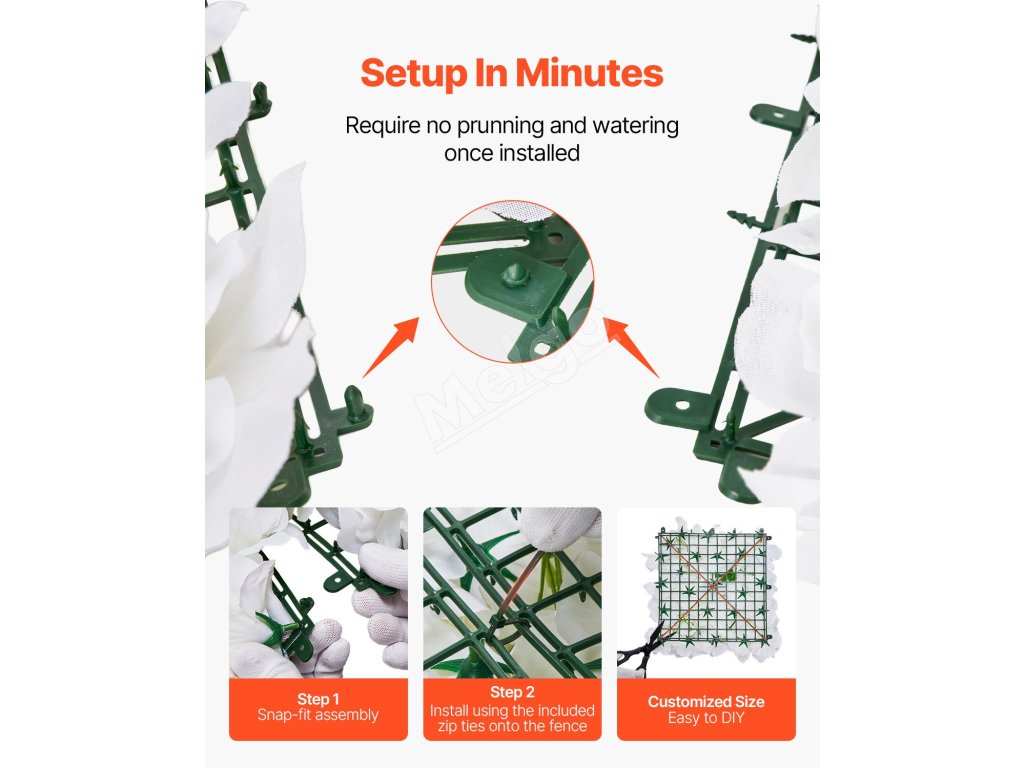 Táto umelá rastlinná stena, vyrobená z hustého a prirodzene vyzerajúceho PE materiálu, sa ľahko montuje pomocou jednoduchých spojovacích prvkov. Súčasťou balenia sú aj zipsy na zaistenie bezpečného upevnenia. Podklad s vysokou hustotou a bujnou vegetáciou ponúka skvelú ochranu vášho osobného súkromia.