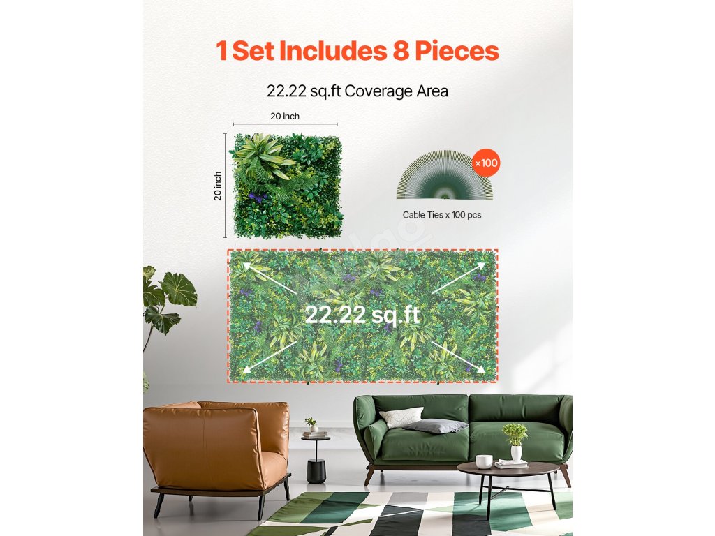 Táto umelá rastlinná stena, vyrobená z hustého a prirodzene vyzerajúceho PE materiálu, sa ľahko montuje pomocou jednoduchých spojovacích prvkov. Súčasťou balenia sú aj zipsy na zaistenie bezpečného upevnenia. Podklad s vysokou hustotou a bujnou vegetáciou ponúka skvelú ochranu vášho osobného súkromia.