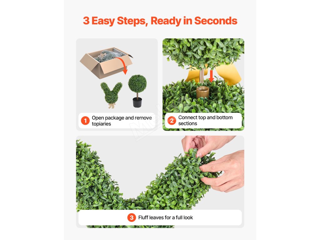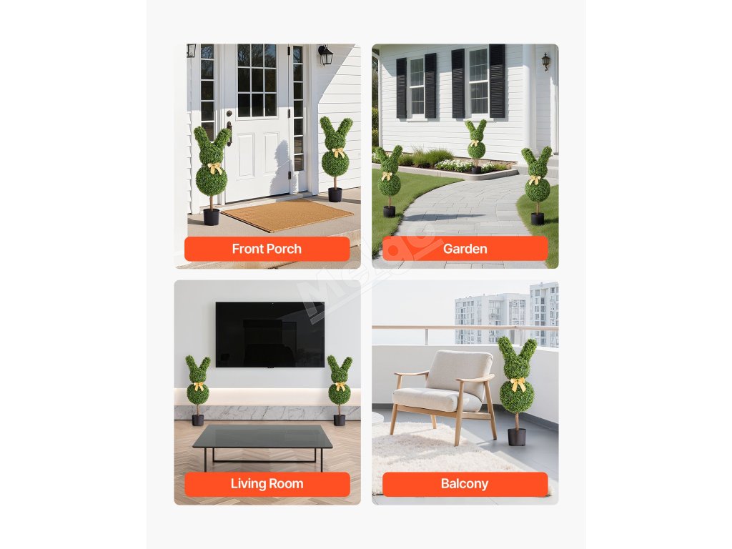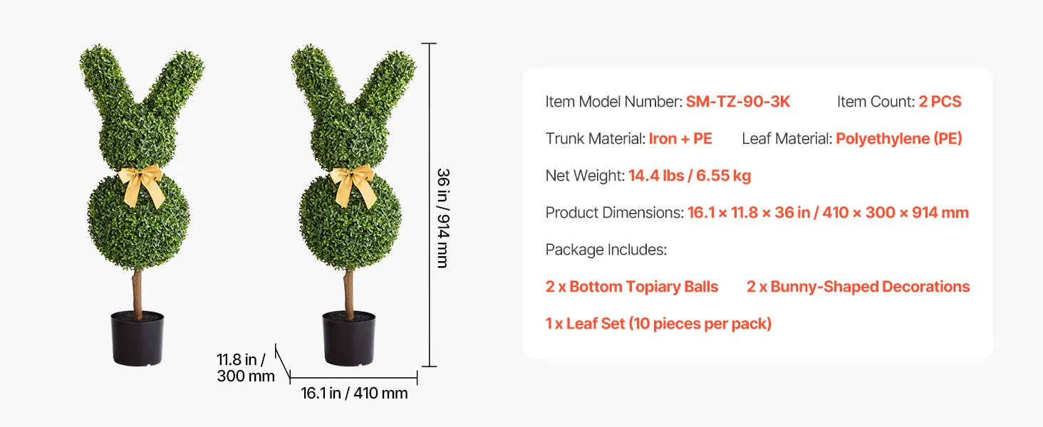 Umelá buxusová guľa v tvare zajačika 2 ks 914 mm na terasu a balkón