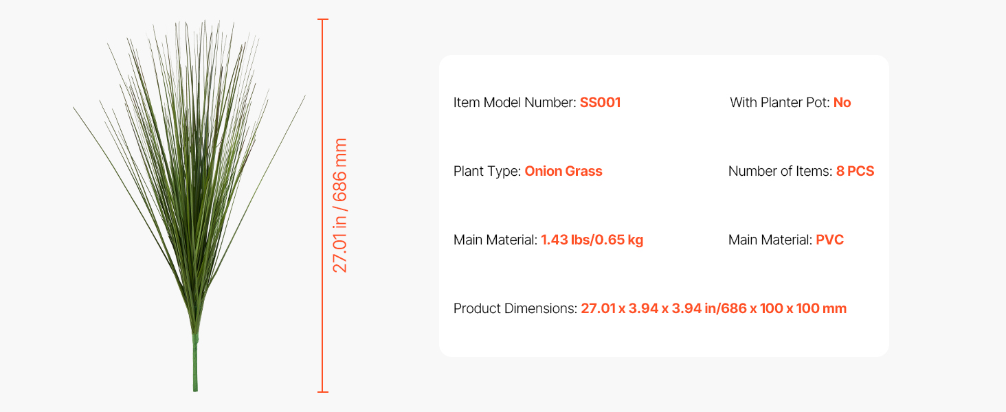 Umelá cibuľová tráva 686 mm, pvc, 8 ks, do interiéru a exteriéru