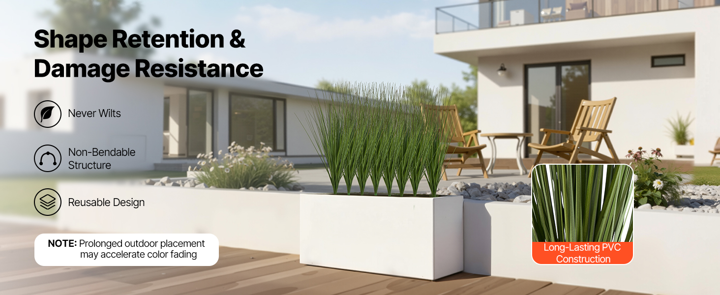 Naša umelá trávnatá zeleň v kvetináčoch je vyrobená z robustného materiálu PVC, takže nevädne ani sa ľahko neohne. Opakovane použiteľná so vzpriamenými listami, ktoré si zachovávajú prirodzený vzhľad a trvalú krásu.