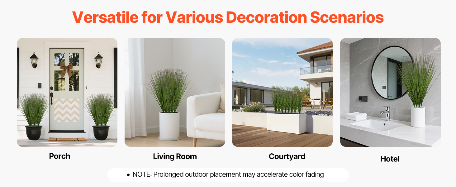 Táto realistická rastlina trávy sa hodí na použitie v interiéri aj exteriéri. Či už ju umiestnite na verande, v obývacej izbe, záhrade alebo hotelovej hale, okamžite zvýrazní zeleň a atmosféru každého priestoru.