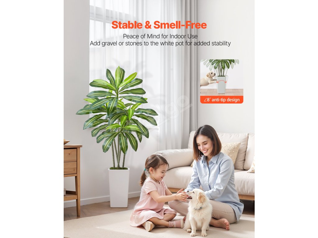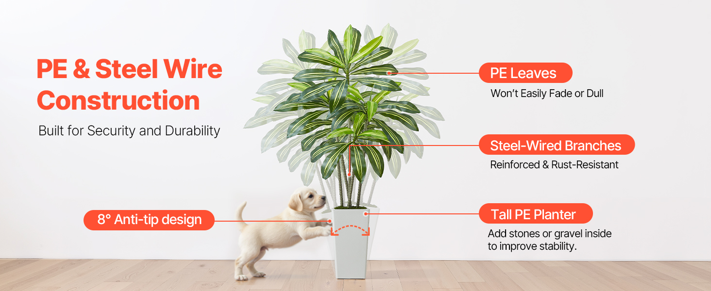 Tieto rastliny sú vyrobené z PE listov a vnútorného oceľového drôtu, vďaka čomu sú odolné voči vyblednutiu a ohýbaniu. Robustný kvetináč pomáha predchádzať prevráteniu a ponúka spoľahlivosť aj dlhodobé používanie.