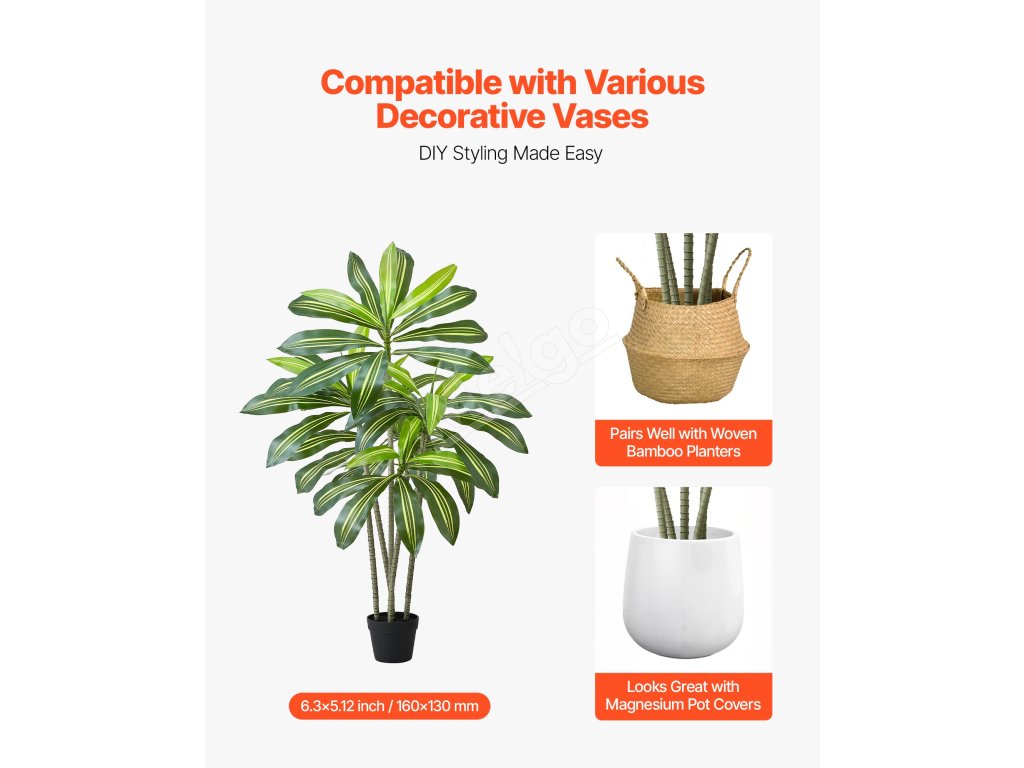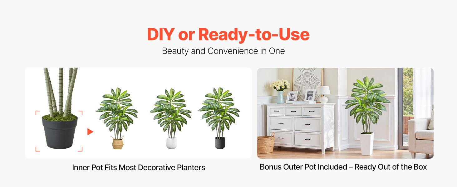 Dodáva sa s minimalistickým jednofarebným kvetináčom, ktorý je pripravený na použitie po vybalení z krabice. Dobre sa kombinuje s väčšinou interiérových štýlov, vďaka čomu môžete svoj domov ľahko obohatiť o tropickú zeleň.