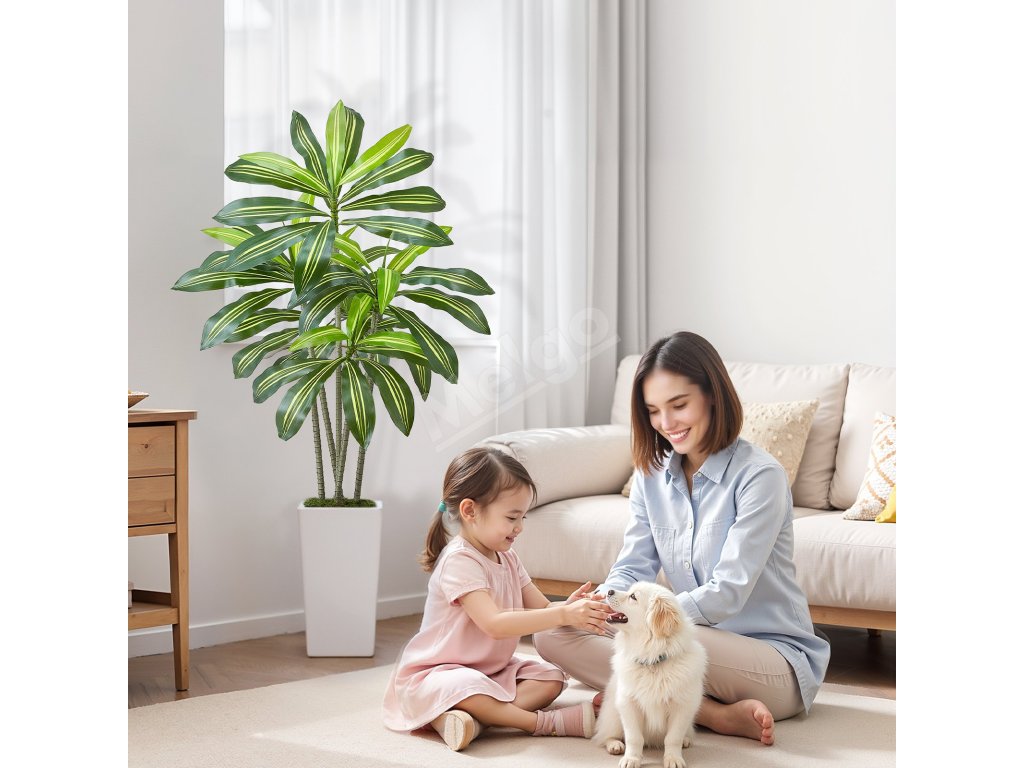 Umelá dracéna 1524 mm v bielom vysokom kvetináči do interiéru