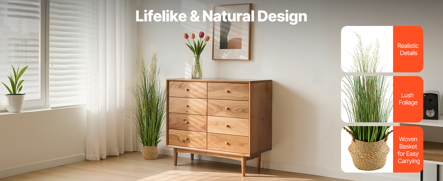 Táto realistická rastlina trávy sa hodí na použitie v interiéri aj exteriéri. Či už ju umiestnite na verande, v obývacej izbe, záhrade alebo hotelovej hale, okamžite zvýrazní zeleň a atmosféru každého priestoru.