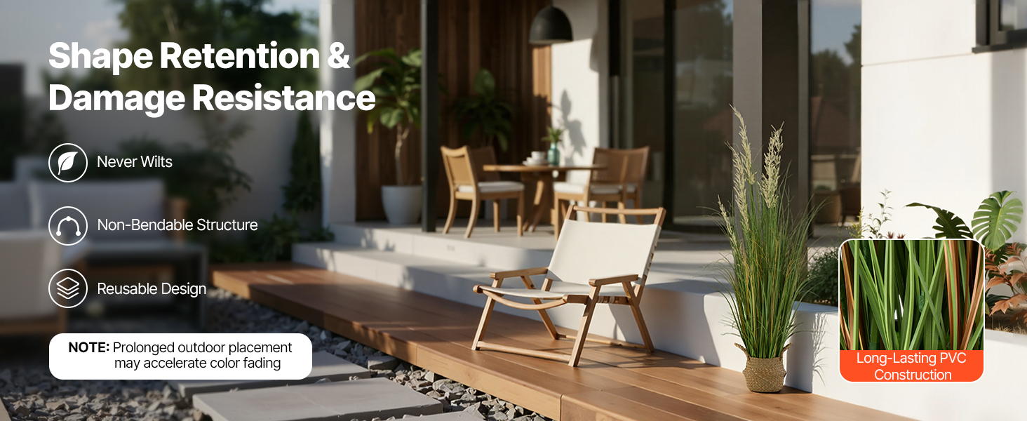 Naša umelá trávnatá rastlina v kvetináči je vyrobená z robustného materiálu PVC, takže nevädne ani sa ľahko neohne. Opakovane použiteľná so vzpriamenými listami, ktoré si zachovávajú prirodzený vzhľad a trvalú krásu.