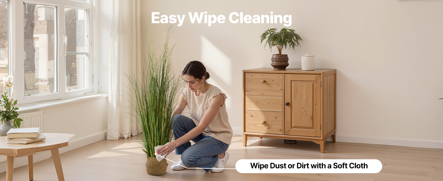 Na očistenie od prachu a každodenných škvŕn ju stačí utrieť mäkkou handričkou. Dekoratívna umelá tráva zostáva sviežo vyzerajúca s minimálnym úsilím, čo prináša rýchlu a bezproblémovú bežnú údržbu.