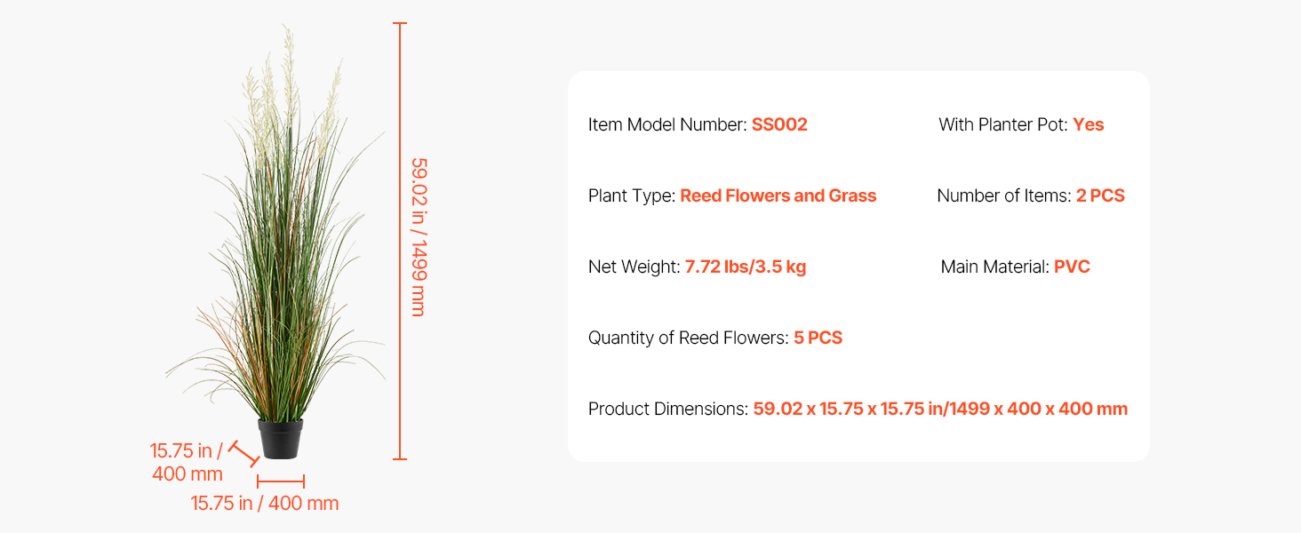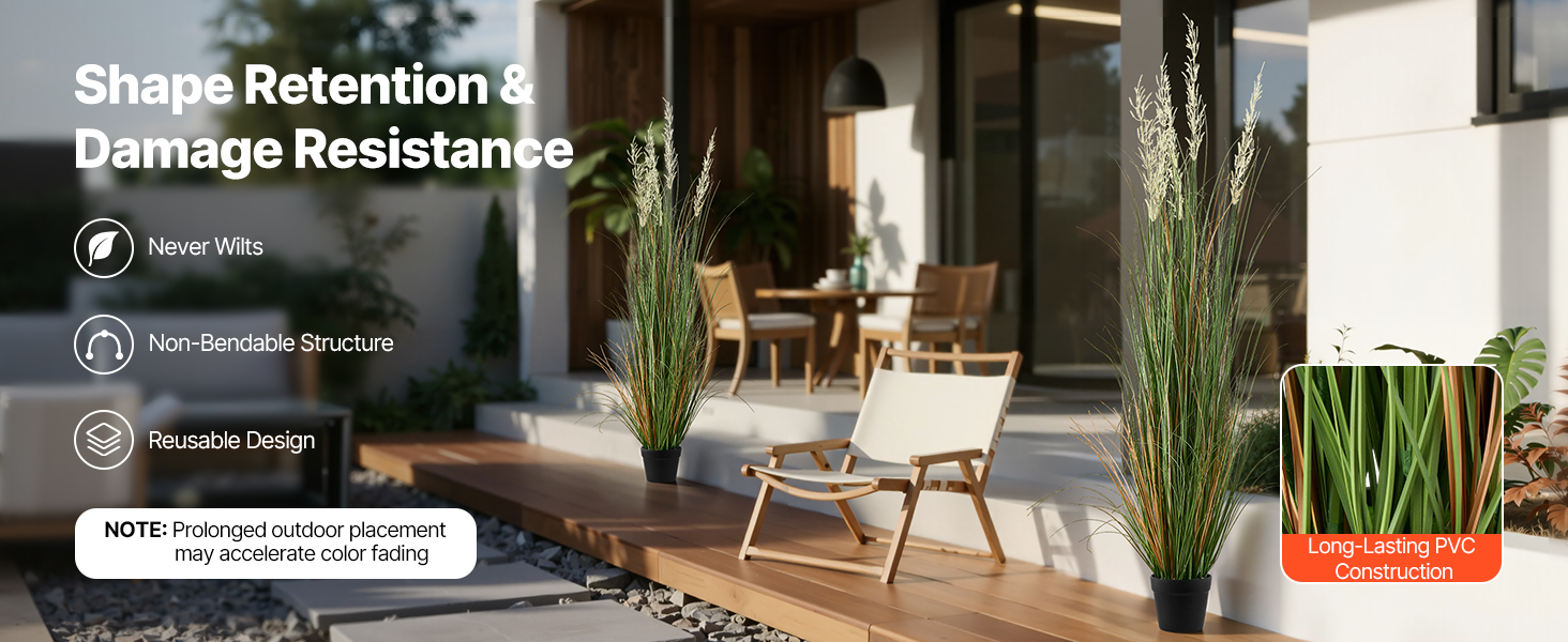 Naša umelá trávnatá rastlina v kvetináči je vyrobená z robustného materiálu PVC, takže nevädne ani sa ľahko neohne. Opakovane použiteľná so vzpriamenými listami, ktoré si zachovávajú prirodzený vzhľad a trvalú krásu.