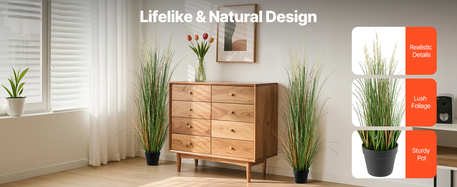 Umelé trstinové kvety a tráva majú realistický vzhľad a realistickú štruktúru. Naša umelá tráva vytvára prirodzenú atmosféru blízku skutočným rastlinám. Ľahko sa udržiava a je vizuálne príťažlivá, dodá vášmu priestoru trvalú zeleň.