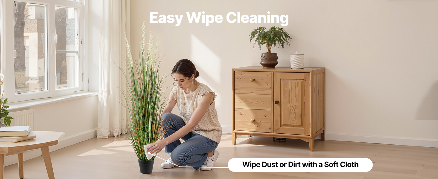Na očistenie od prachu a každodenných škvŕn ju stačí utrieť mäkkou handričkou. Dekoratívna umelá tráva zostáva sviežo vyzerajúca s minimálnym úsilím, čo prináša rýchlu a bezproblémovú bežnú údržbu.