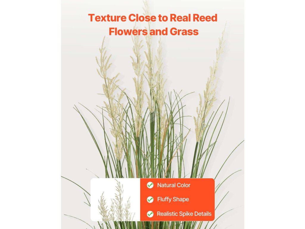 Umelé trstinové kvety a tráva majú realistický vzhľad a realistickú štruktúru. Naša umelá tráva vytvára prirodzenú atmosféru blízku skutočným rastlinám. Ľahko sa udržiava a je vizuálne príťažlivá, dodá vášmu priestoru trvalú zeleň.
