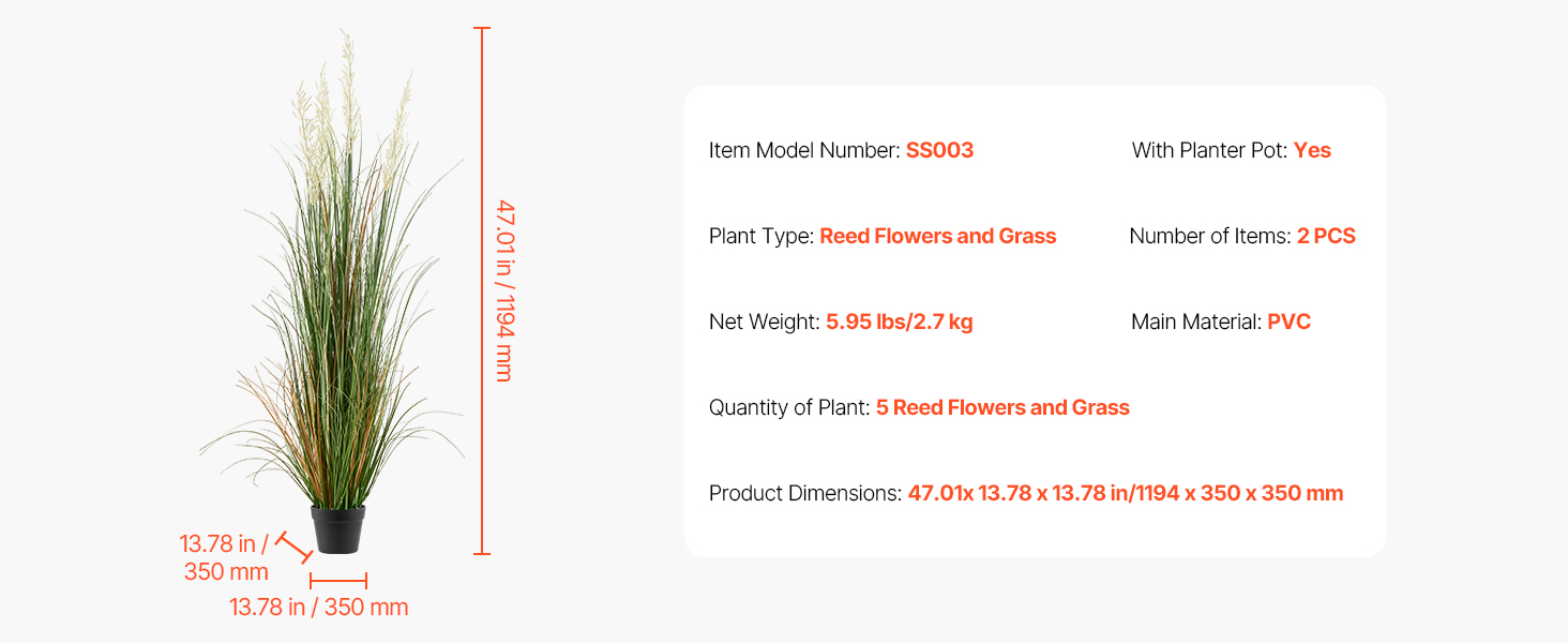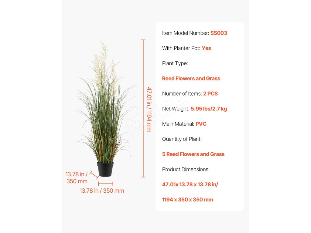 Naša umelá trávnatá rastlina v kvetináči je vyrobená z robustného materiálu PVC, takže nevädne ani sa ľahko neohne. Opakovane použiteľná so vzpriamenými listami, ktoré si zachovávajú prirodzený vzhľad a trvalú krásu.