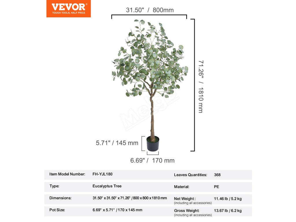 Umelý eukalyptový strom 1.8 m, pe materiál, proti prevráteniu