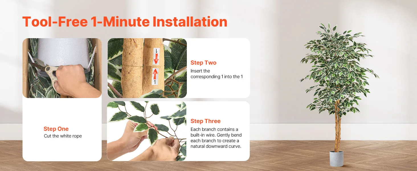 Tento umelý stromček má žiarivé, realistické zelené listy, vďaka ktorým sa stane skvelým doplnkom vašej domácnosti, kancelárie alebo výzdoby terasy. Okamžite vnesie do vášho priestoru nádych prírody a sviežosti!