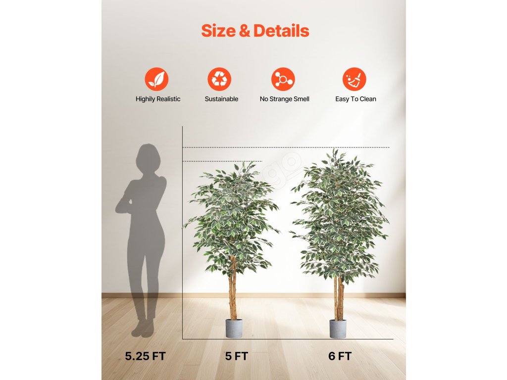 Tento umelý stromček má žiarivé, realistické zelené listy, vďaka ktorým sa stane skvelým doplnkom vašej domácnosti, kancelárie alebo výzdoby terasy. Okamžite vnesie do vášho priestoru nádych prírody a sviežosti!
