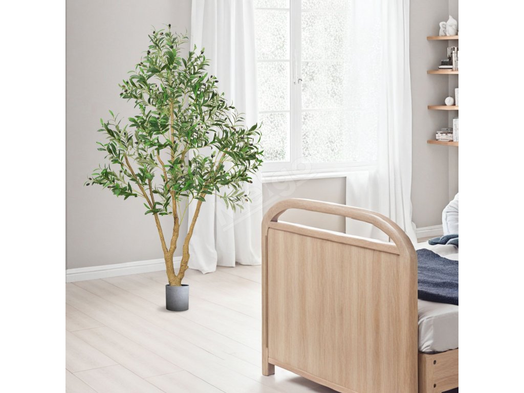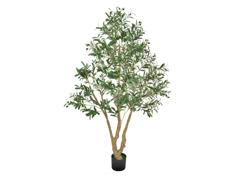 Umelý olivovník 180 cm s čiernym kvetináčom, drevený kmeň a plody