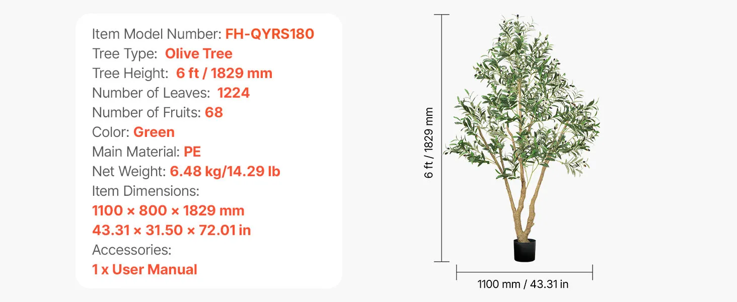 | Výška stromu | 6 stôp / 1829 mm |