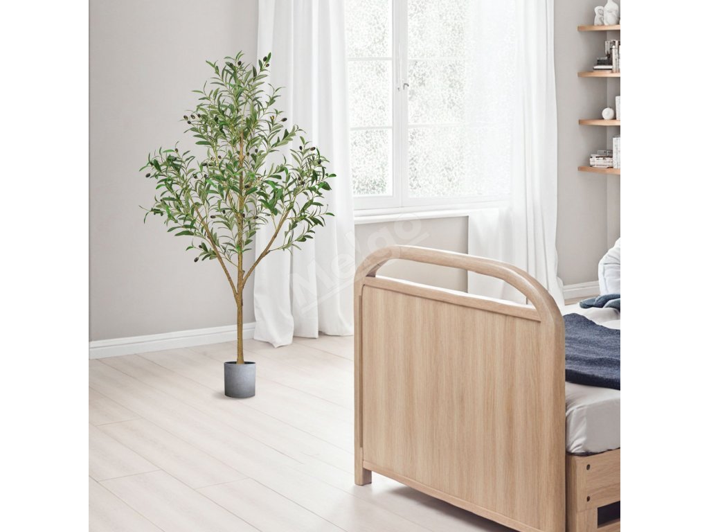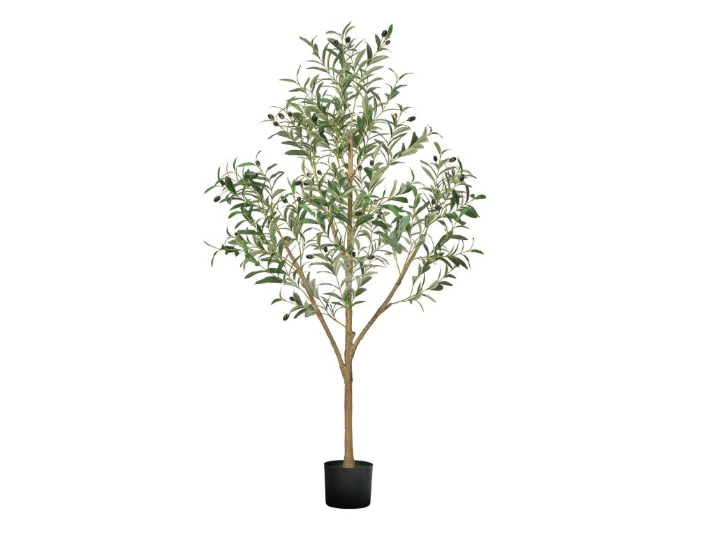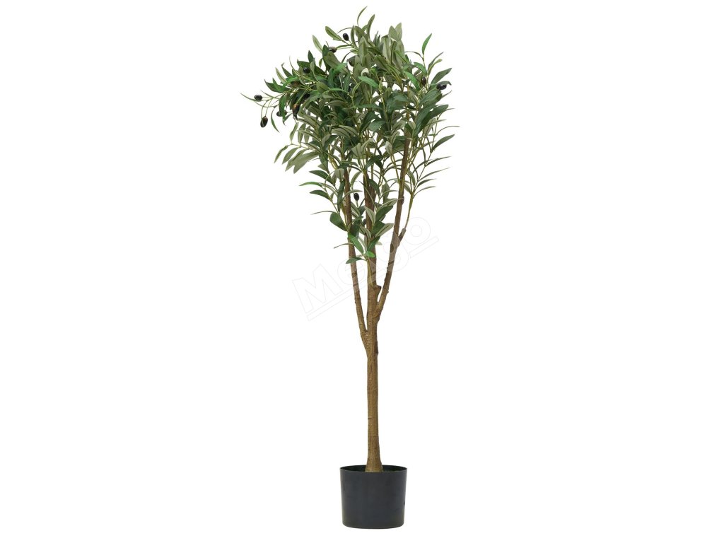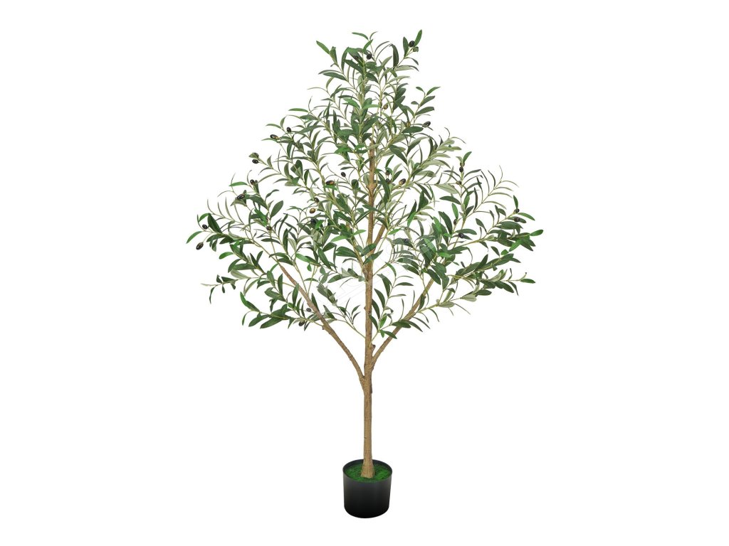 Umelý olivový strom 150 cm s čiernym kvetináčom, drevený kmeň