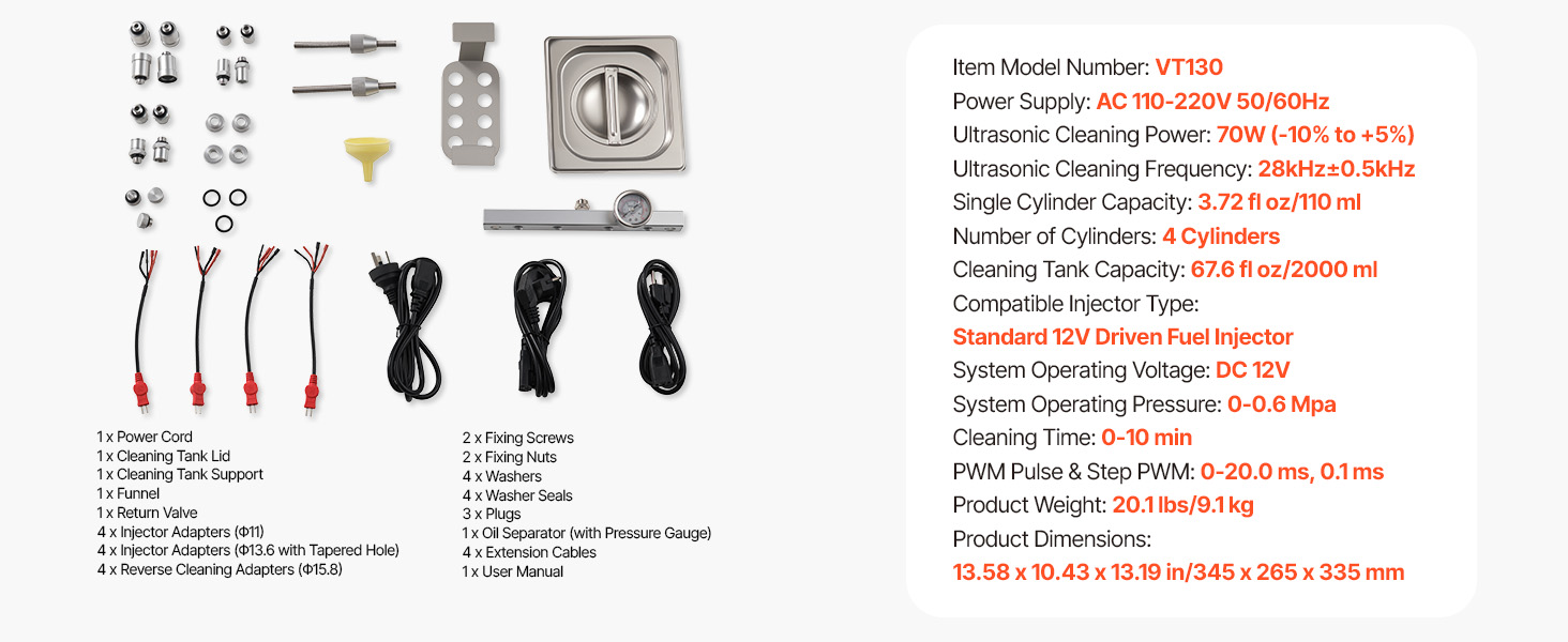 Tento tester čističa vstrekovacích ventilov paliva dokáže čistiť a testovať vstrekovacie ventily paliva pre rôzne vozidlá. Obnovuje normálny výkon vstrekovacích ventilov, čím podporuje lepšiu účinnosť spaľovania, silnejšie zrýchlenie a plynulejšiu jazdu.