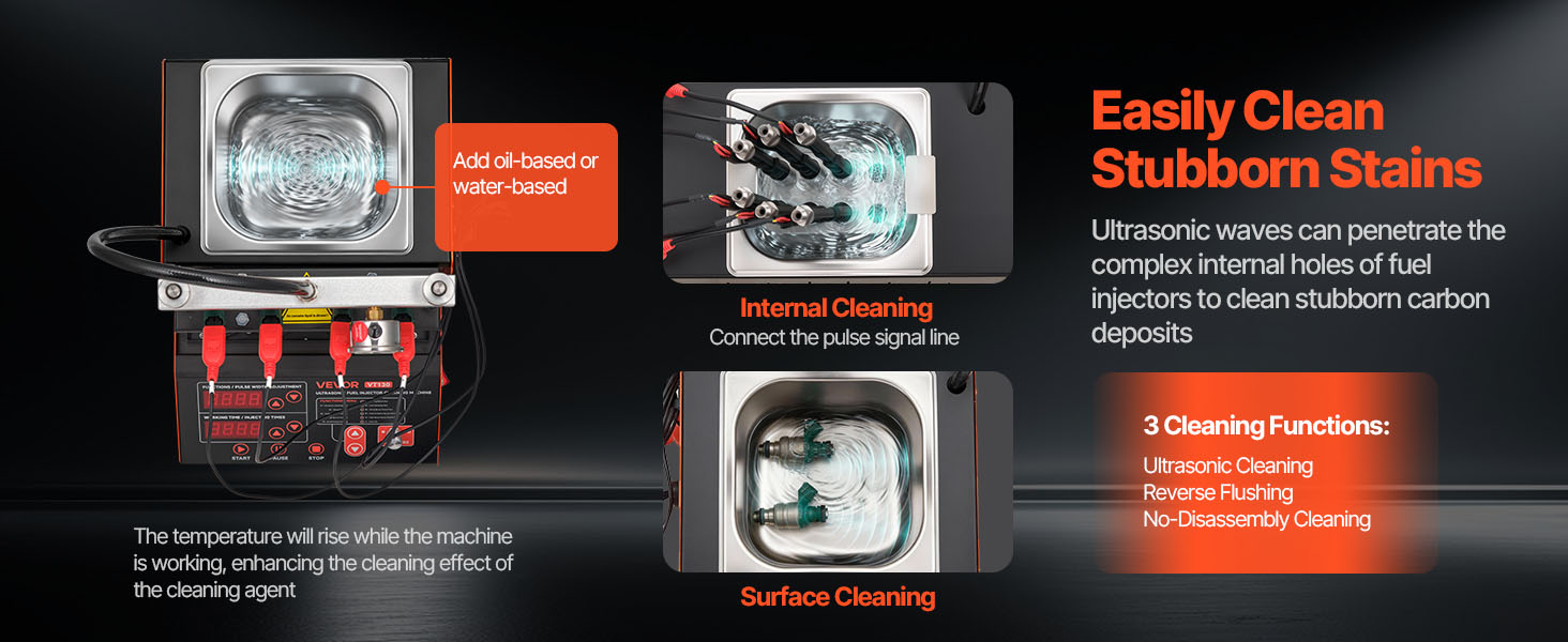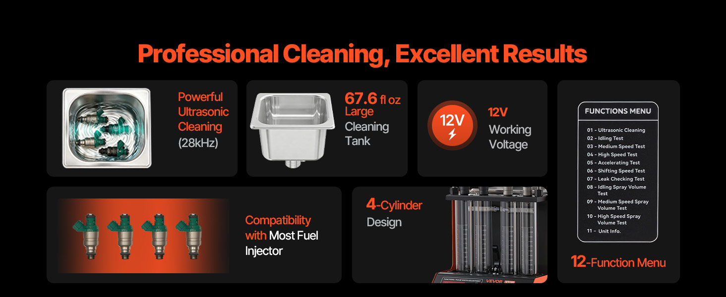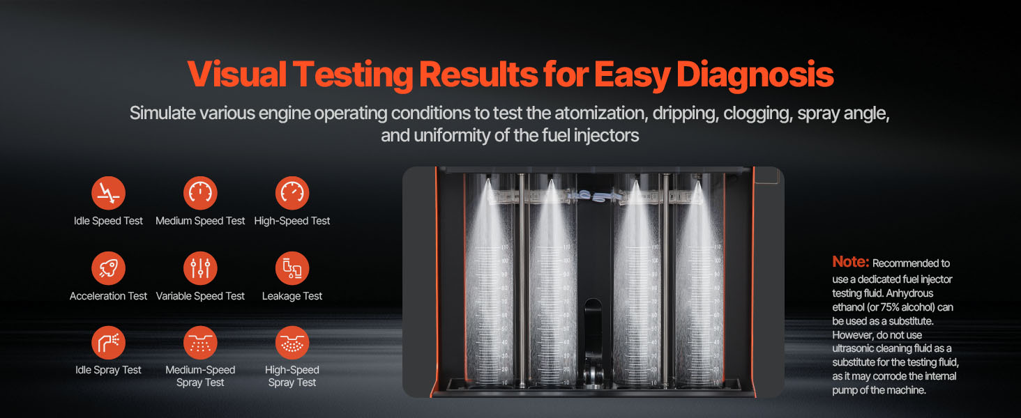 S 3 režimami čistenia a 9 testovacími funkciami tento čistič vstrekovacích ventilov obnovuje vstrekovacie ventily do obnoveného stavu.