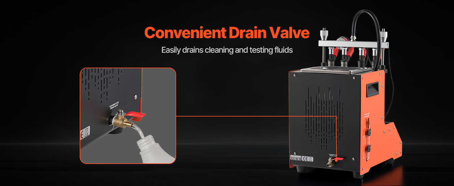 Tento čistič vstrekovacích ventilov je vybavený vypúšťacím ventilom, ktorý umožňuje jednoduché vypúšťanie použitých čistiacich a testovacích kvapalín.