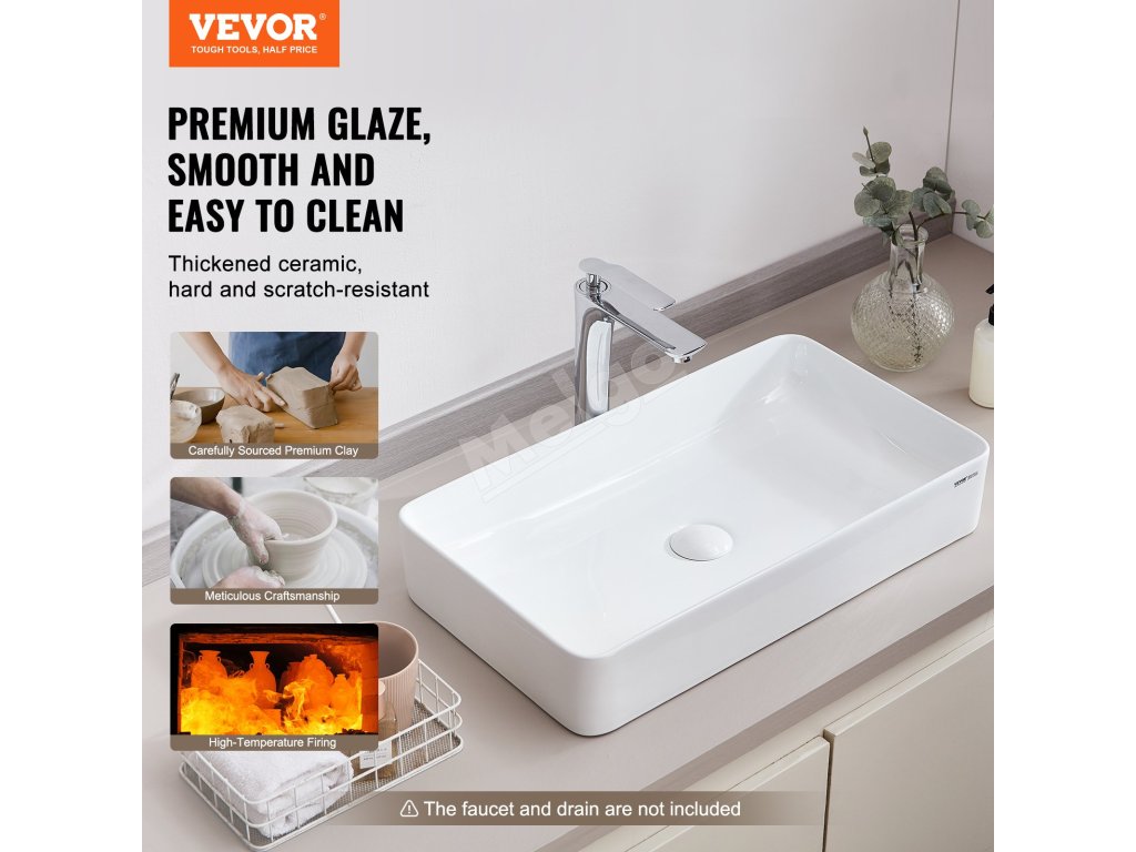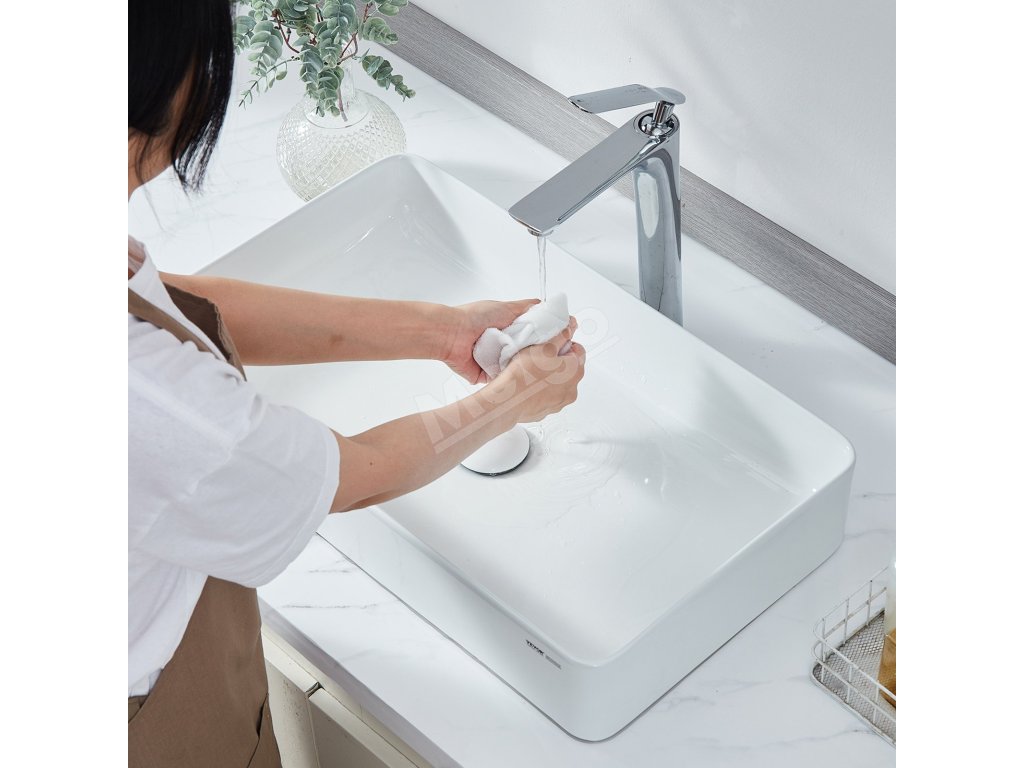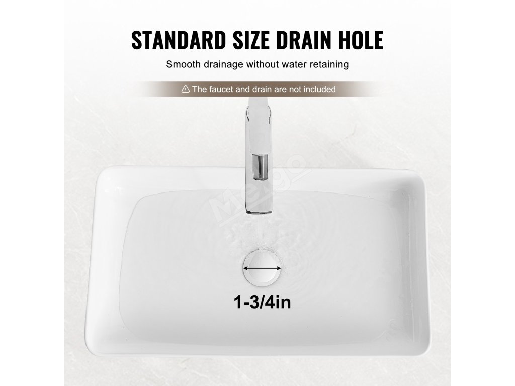 Vďaka minimalistickému obdĺžnikovému tvaru a decentnej bielej farbe tento drez vyžaruje krásu a luxus. Doplní rôzne štýly interiéru a je obľúbené medzi majiteľmi domov na použitie v kúpeľniach a toaletných stolíkoch. Je vhodný aj do hotelov, karavanov, reštaurácií, kancelárskych budov a ďalších priestorov.