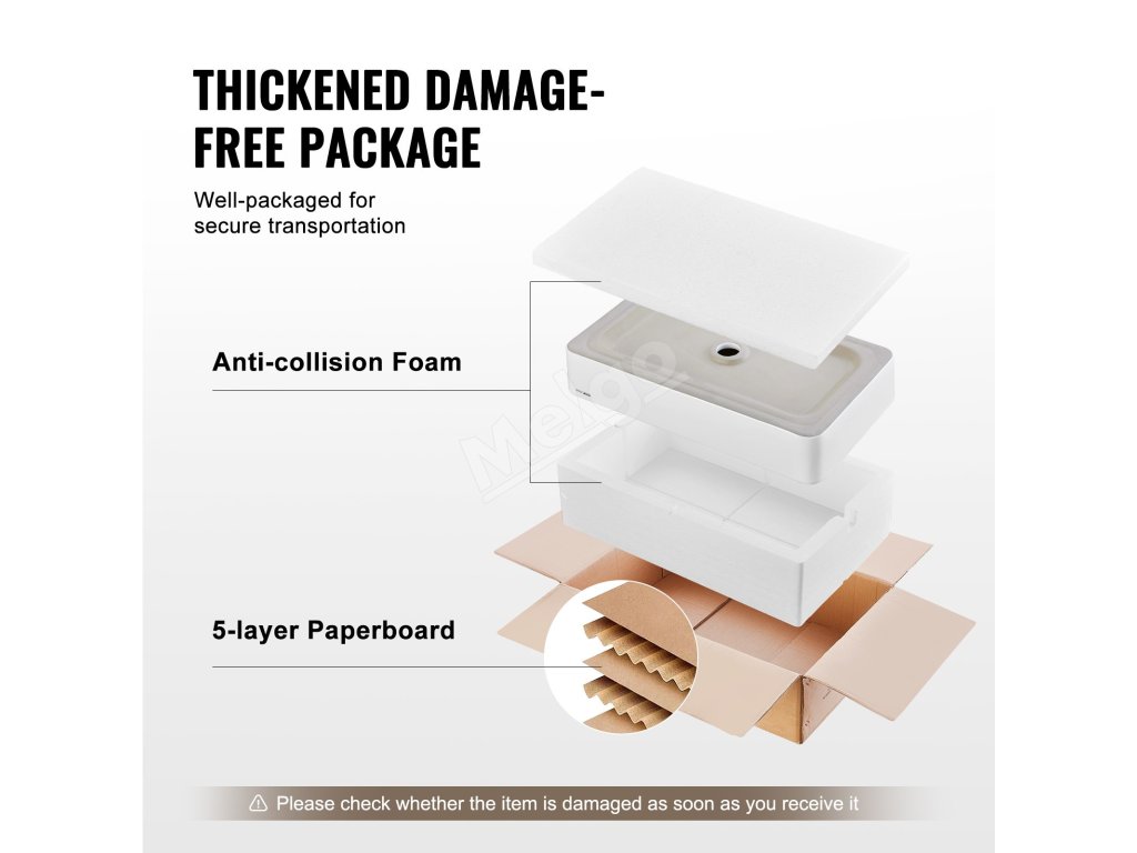 Umývadlo je obklopené penovým polstrovaním, ktoré zabraňuje poškodeniu počas prepravy. Pred inštaláciou drezu ho skontrolujte, aby ste sa uistili, že sa pri preprave nepoškodil. Pri jednoduchej inštalácii v 4 krokoch postupujte podľa pokynov v návode.