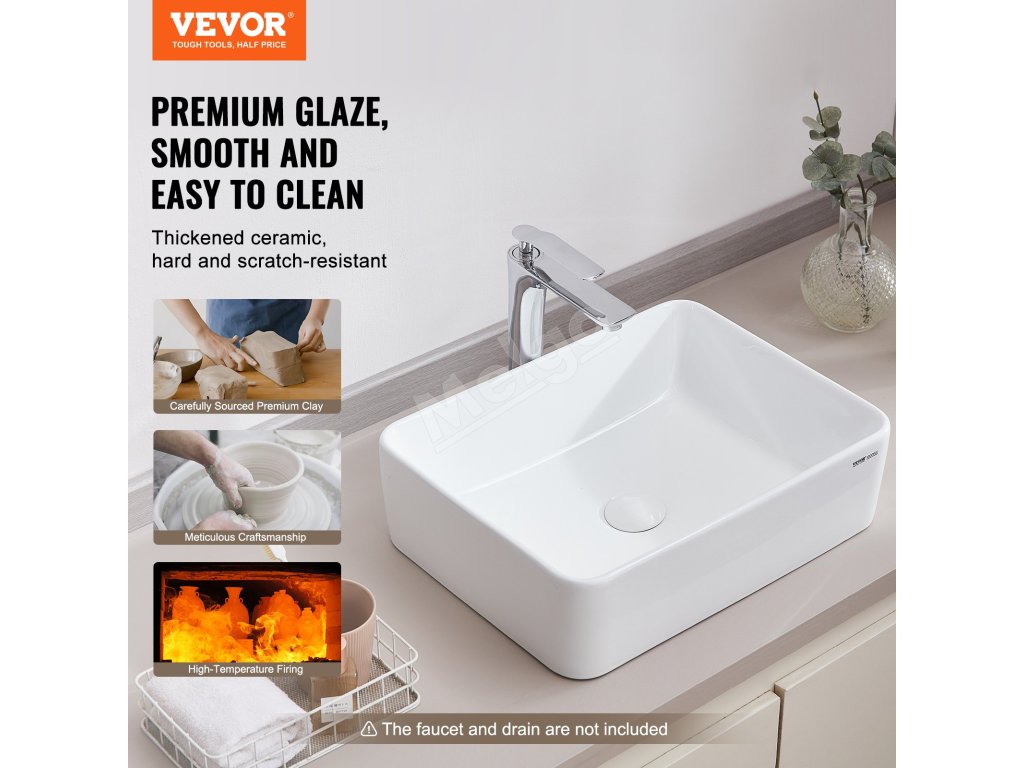 Vďaka minimalistickému obdĺžnikovému tvaru a decentnej bielej farbe tento drez vyžaruje krásu a luxus. Doplní rôzne štýly interiéru a je obľúbené medzi majiteľmi domov na použitie v kúpeľniach a toaletných stolíkoch. Je vhodný aj do hotelov, karavanov, reštaurácií, kancelárskych budov a ďalších priestorov.