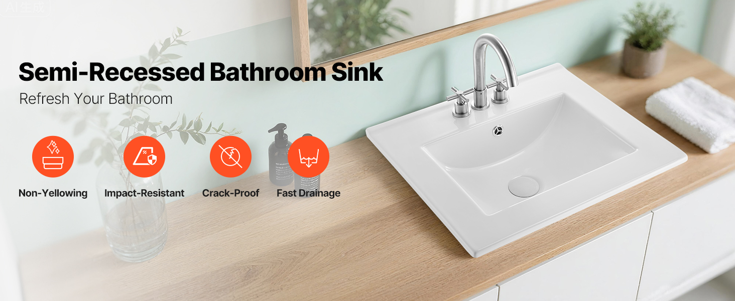 Anti-Yellowing Semi-Recessed kúpeľňové umývadlo