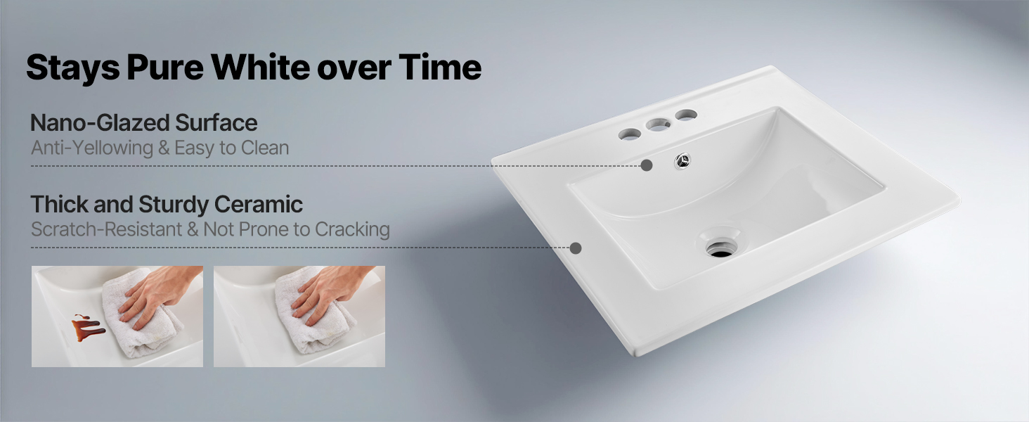 Toto keramické kúpeľňové umývadlo, vypálené pri vysokých teplotách pre dosiahnutie odolnosti, je potiahnuté vrstvou nano glazúry, ktorá odoláva škvrnám od vody, mydlovým vodám a poškriabaniu. Časom zostáva žiarivé a hladké, takže každodenné čistenie je rýchle a bez námahy.
