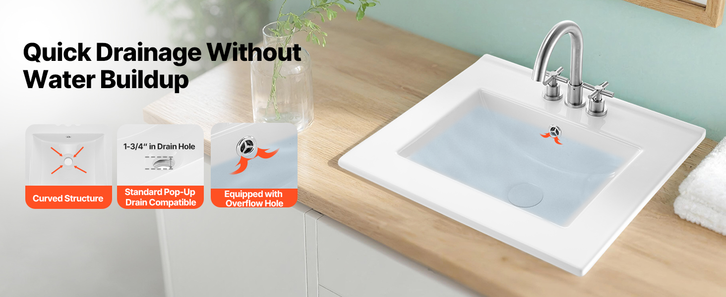 Kúpeľňové polozapustené umývadlo navrhnuté so zakriveným dnom a širokým odtokovým otvorom podporuje plynulý odtok vody bez toho, aby sa v ňom voda hromadila. Odoláva zápachu a udržiava umývadlo čisté a suché, čím prináša pohodlnejšie a efektívnejšie umývanie.