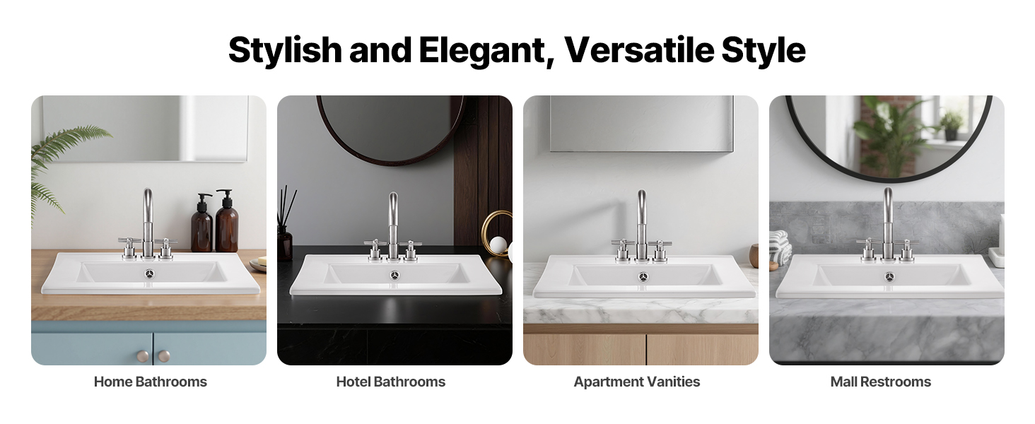 Naše kúpeľňové zapustené umývadlo sa vyznačuje štýlovým, elegantným vzhľadom, ktorý sa bez problémov začlení do akéhokoľvek priestoru - od kompaktných bytov a hotelov až po luxusné domy a obchodné centrá. Dodajte mu nádych sofistikovanosti pre rôzne štýly domácnosti.
