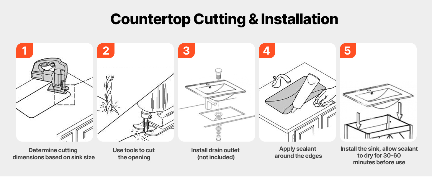 Toto zapustené kúpeľňové umývadlo si pred nastavením vyžaduje presné výrezy na dosku. Odporúča sa použiť odborné meranie a rezanie na základe skutočných rozmerov umývadla. Uistite sa, že okraje sú bezpečne utesnené, aby sa zabránilo poškodeniu spôsobenému presakujúcou vodou.