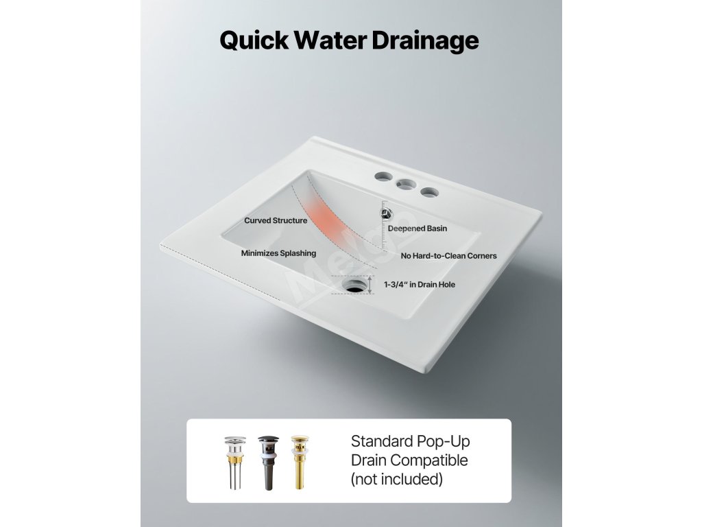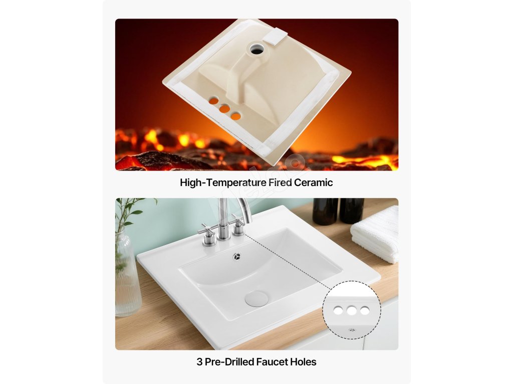 Toto zapustené kúpeľňové umývadlo si pred nastavením vyžaduje presné výrezy na dosku. Odporúča sa použiť odborné meranie a rezanie na základe skutočných rozmerov umývadla. Uistite sa, že okraje sú bezpečne utesnené, aby sa zabránilo poškodeniu spôsobenému presakujúcou vodou.