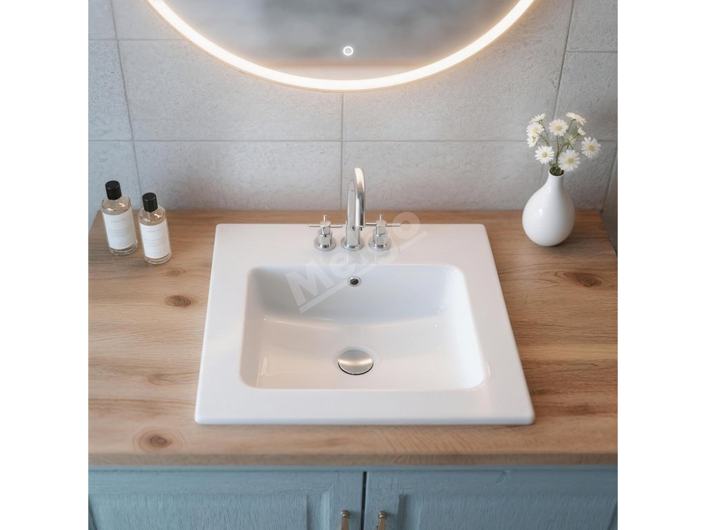 Polozapustené keramické umývadlo 510×465 mm, 3 otvory, s prepadom