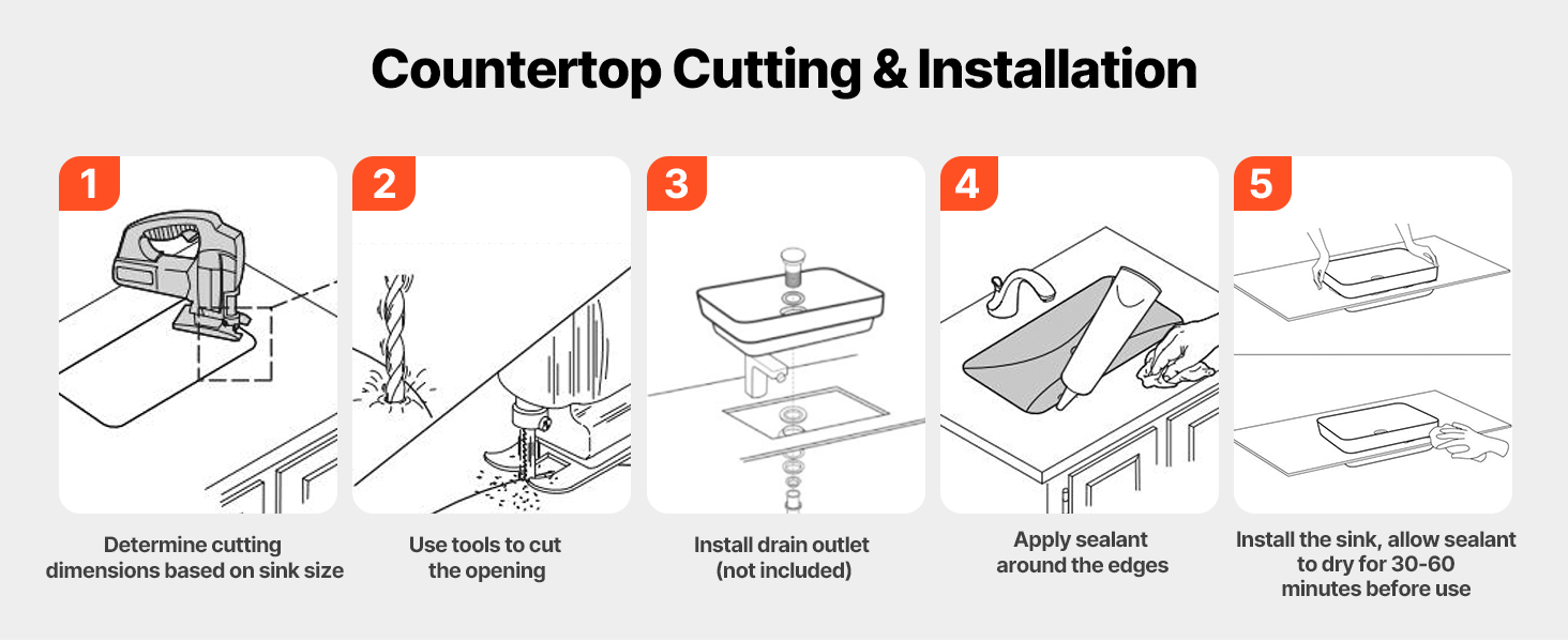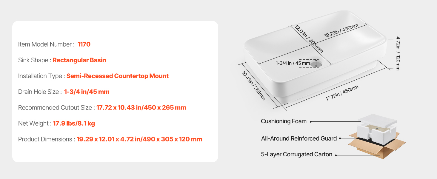 Toto zapustené kúpeľňové umývadlo si pred nastavením vyžaduje presné výrezy na dosku. Odporúča sa použiť odborné meranie a rezanie na základe skutočných rozmerov umývadla. Uistite sa, že okraje sú bezpečne utesnené, aby sa zabránilo poškodeniu spôsobenému presakujúcou vodou.