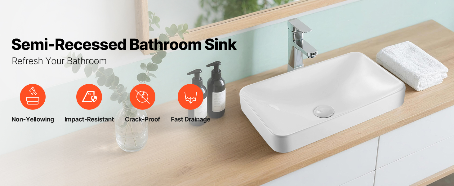 Anti-Yellowing Semi-Recessed kúpeľňové umývadlo