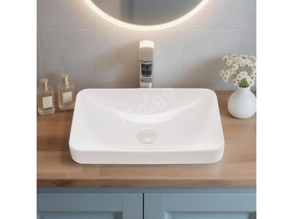Polozapustené keramické umývadlo obdĺžnikové 490×305 mm, otvor 45 mm
