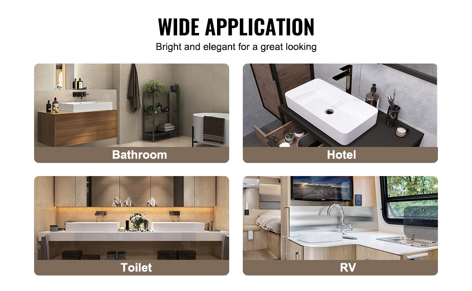 Vďaka minimalistickému obdĺžnikovému tvaru a decentnej bielej farbe tento drez vyžaruje krásu a luxus. Doplní rôzne štýly interiéru a je obľúbené medzi majiteľmi domov na použitie v kúpeľniach a toaletných stolíkoch. Je vhodný aj do hotelov, karavanov, reštaurácií, kancelárskych budov a ďalších priestorov.