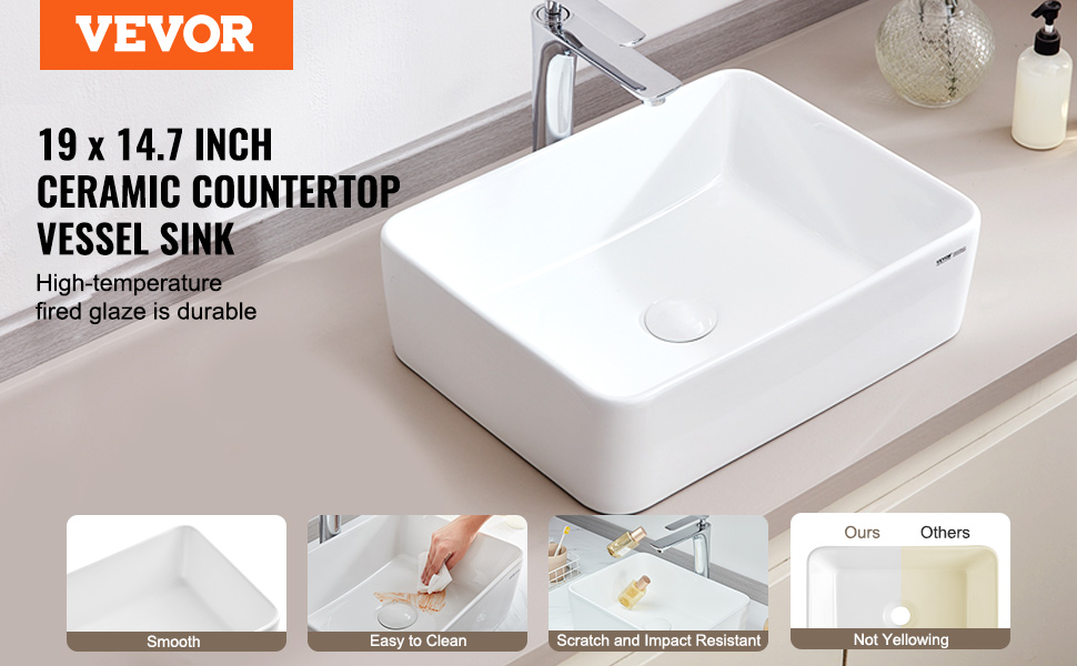 Toto umývadlo na nádoby je vyrobené z vysokokvalitnej keramickej hliny, ktorá bola úplne vitrifikovaná vypálením pri vysokej teplote, vďaka čomu má tvrdú štruktúru, ktorá časom nežltne. Povrch je hladký a jemný s nízkou nasiakavosťou, vďaka čomu je odolný voči škvrnám a ľahko sa udržiava.
