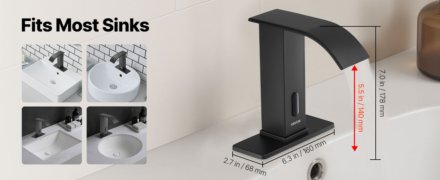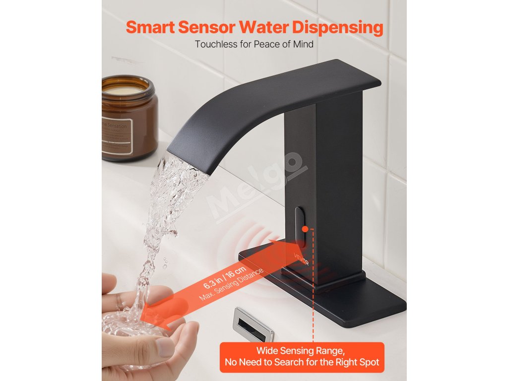 Bezdotyková umývadlová batéria, senzor, teplá/studená, 9.5 mm, čierna